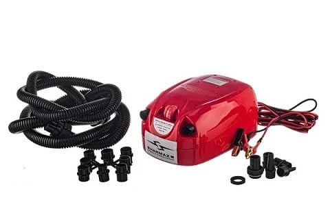 Электрический насос высокого давления. Предназначен для накачивания надувных лодок, бассейнов и матрасов и откачивания воздуха из них. Двухступенчатый (автоматическое переключение с первой ступени на вторую) . Работает от аккумулятора 12 В с механическим регулятором давления в среднем накачивает лодку за 5-7 минут Комплектация: сумка-чехол, шланг гибкий, комплект переходников и уплотнений, руководство по эксплуатации.