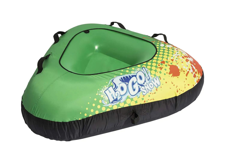 Размер упаковки: 33 x 9.5 x 30 см, Maксимальная нагрузка, кг: 95, Размер, см: 143, Материал (верх/низ): ПВХ/ПВХ, Расцветка: С принтом. Надувные бескамерные санки H2OGO! меняют представление о тюбингах. Теперь нет необходимости вставлять камеру внутрь тюбинг накачивается целиком, как обычный надувной матрас. Морозоустойчивый материал Polar-Shield™ сохраняет все свои свойства при минусовой температуре (до -20 градусов). Предназначен для одного пассажира. Ручки большого размера для удобного управления в перчатках. Клапан быстрого выпуска воздуха с блокировкой. В комплект входят: надувные санки; чехол для санок; ремонтная заплатка.