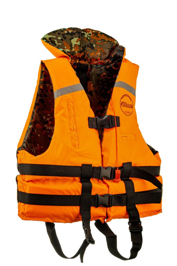 Спасательный двухсторонний жилет используется для обеспечения безопасности на воде во время рыбалки, тренировок, соревнованиях в водных видах спорта и туристических водных походах. Жилет сконструирован таким образом, чтобы поддерживать на поверхности человека даже в бессознательном состоянии, и при этом обязательно в положении «лицом вверх». В такой позиции полностью исключена возможность случайно захлебнуться. Фиксация жилета и регулировка объема осуществляется с помощью ремней на фастексах. Жилет с высоким подголовником, который хорошо держит голову человека на плаву и обладает достаточной гибкостью для складывания при транспортировке. Сверху на уровне груди и сзади на подголовнике размещены светоотражающие ленты.