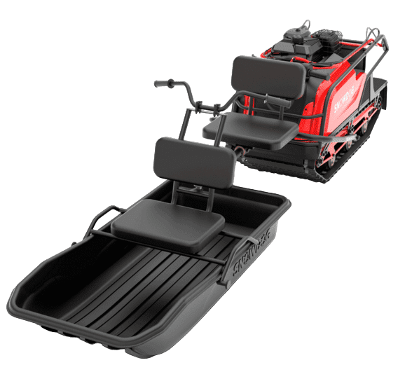 Принцип действия модуля прост: сани прокладывают путь для буксировщика, что серьезно увеличивает проходимость и повышает управляемость всей конструкции мотобуксировщика, а установленный на сани руль облегчает управление. Помимо этого, для водителя и пассажира есть два оборудованных кресла с мягкой обивкой: теперь передвигаться на SnowDog гораздо комфортнее.