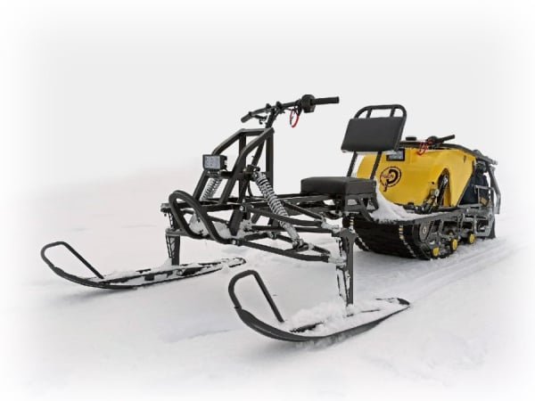 Лыжный модуль для мотобуксировщика "Рыбак". Разработан и спроектирован специально для мотобуксировщиков с учетом множества особенностей данной техники. Низкий центр тяжести дает невиданную ранее проходимость. Очень важной отличительной особенностью является повышенная устойчивость данного лыжного модуля, завалить на бок мотобуксировщик с нашим лыжным модулем практически не возможно. Еще одной из особенностей данного лыжного модуля является маневренность, радиус разворота составляет всего 7 метров, что является лучшим показателей среди лыжных модулей для мотобуксировщиков.