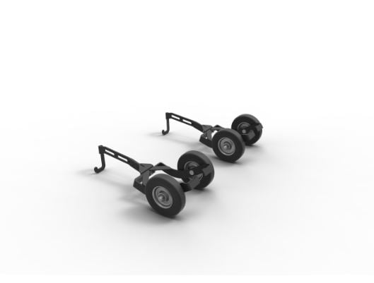 Усиленная конструкция из стали толщиной 5 мм. С косынками и ребрами жесткости, усиленные точеные оси колес диаметром 17 мм. Усиленные колеса на шарикоподшипниках с допустимой нагрузкой 200 кг. на каждое. Регулировка по ширине лыжи и длины крюка.