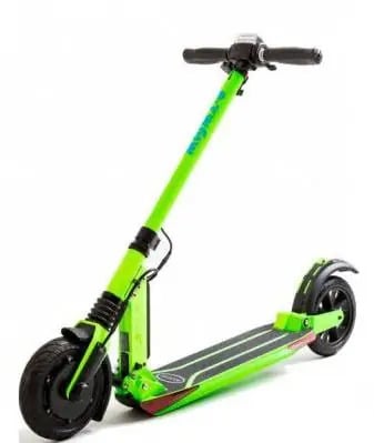 В основе конструкции электрического самоката – прочная рама из алюминиевого сплава и колеса диаметром 8 дюймов. Безвоздушные непрокалываемые шины с запатентованным производителем составом резины очень практичны в условиях ежедневного использования. Комфортную езду по неровному асфальту и пересеченной местности обеспечивает надежная двойная подвеска. Устройство оборудовано рекуперативным тормозом на переднем колесе и классическим механическим на заднем. Дека покрыта антискользящим наждачным материалом.
