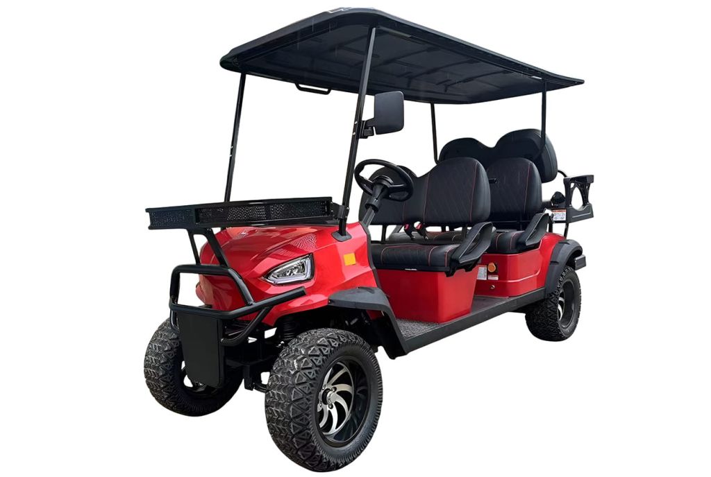 Гольфкар GreenCamel Linhai A42L (4+2, 4kW AC, R14 литые) LUX lifted - четырехместный гольфкар представляет собой электрическое транспортное средство, спроектированное для перевозки четырех пассажиров, часто используется на гольф-полях, в коммерческих и индустриальных сферах, таких как курорты, заводы, склады, аэропорты, парки и другие места, где требуется эффективный и экологичный способ перевозки пассажиров. Также гольфкар оснащен складными задними сидениями которые могут быть полезны при транспортировке спортивного инвентаря и различных грузов. Электрические гольфкары считаются более экологичными, так как не выбрасывают вредных газов и имеют низкий уровень шума, что особенно важно в рабочих местах, где шум может быть проблемой.