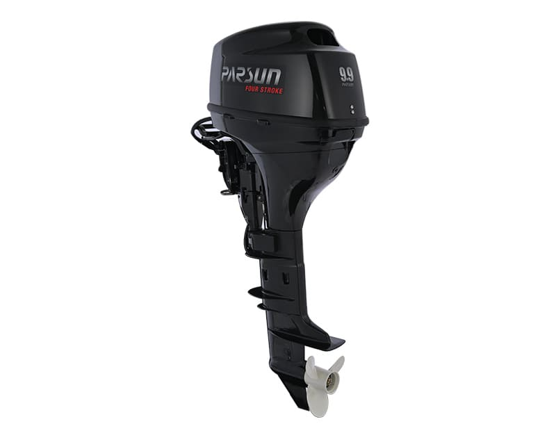 Parsun F9.9AFWS-EFI - четырехтактный двухцилиндровый мотор мощностью 9.9 л.с. с дистанционным управлением; электронной системой зажигания (CDI); с электростартером и ручной системой запуска; внешним бензобаком на 24 литра, рассчитанный на стандартную высоту транца S. Имеет рабочий объем 362 куб.см. Оснащен системой водяного охлаждения, за счет чего контролируется температура мотора. Мотор комплектуется алюминиевым гребным винтом, а также выносным баком для топлива 24 литра. Производитель предусмотрел регулировку подъема двигателя, за счет чего мотор может использоваться в режиме мелководья.