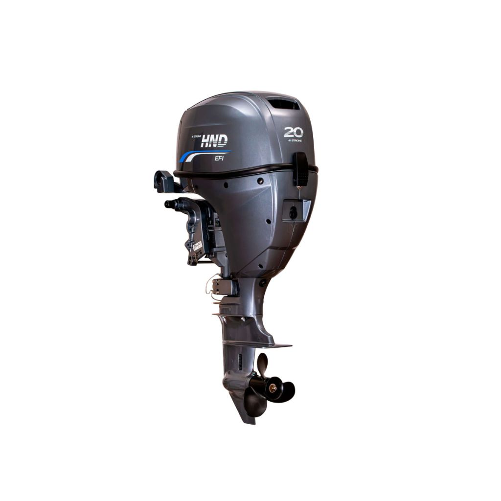 Представляем 4-тактный подвесной лодочный мотор HND 20 FIERS номинальной мощности 20 лошадиных сил и рабочим объемом 345 см³. Описание МТО:F - 4-тактный двигатель; I - инжектор (EFI); E - электростартер; R - дистанционное управление; S - короткий дейдвуд.