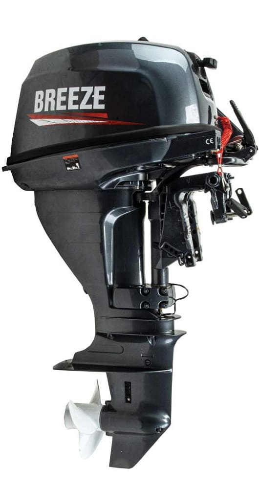 BREEZE F9,9S - это 4-х тактный 2-х цилиндровый лодочный мотор мощностью 9.9 л.с., позволяющий развивать скорость более 30 км/ч. Мотор является копией мотора Yamaha. Одно из основных преимуществ качественная сборка и низкий уровень шума. Обеспечивает уверенный ход на водоемах с течением и без. Имеет режим для передвижения по мелководью. Лодочный мотор с румпельным управлением. Ручка газа имеет три положения F-N-R(передний-нейтраль-задний). Запуск двигателя производится вручную шнуром.