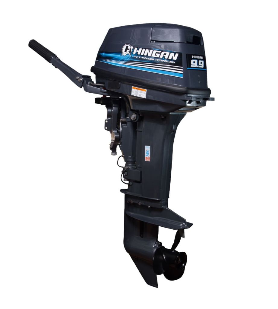 Двухтактный мотор HINGAN 9.9 ENDURO – бензиновый двигатель для лодок и катеров, который весит 41 килограмм. Он мощный, но малогабаритный, поэтому устройство можно перевезти в багажнике автомобиля. Запускается мотор вручную, с помощью троса CDI, а управление у данной модели — румпельное.