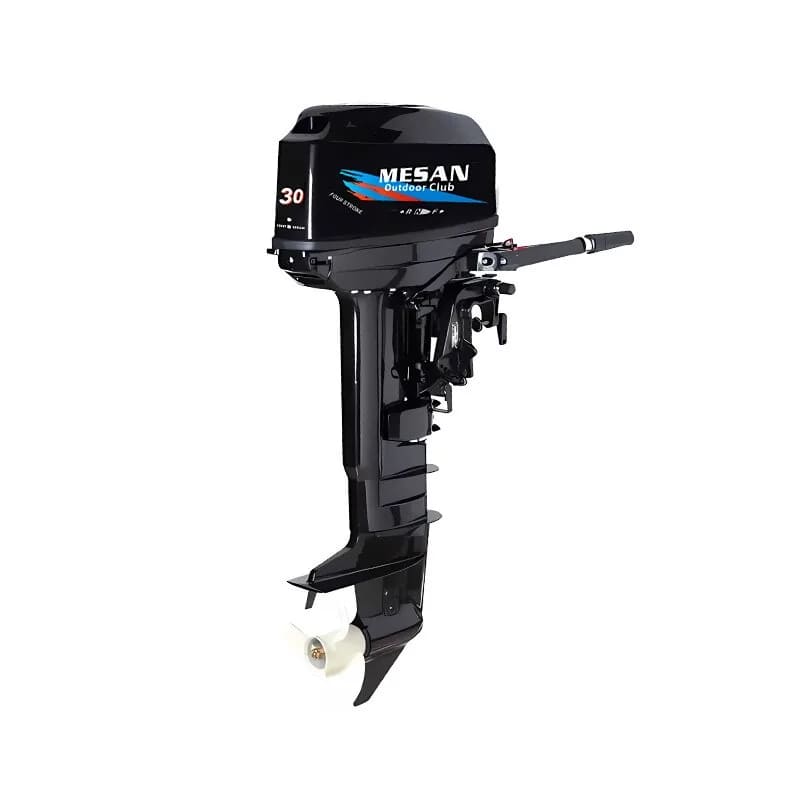 Двухтактный бензиновый лодочный мотор Mesan с двумя цилиндрами оснащен тремя передачами движения — передней, задней, нейтральной. Двигатель подойдёт для лодок, изготовленных из поливинилхлорида. Это синтетический материал, который является бесцветной прозрачной пластмассой с повышенными свойствами прочности и эластичности. Mesan на 30 лошадиных сил с топливным баком, рассчитанным на 24 литра, позволяет проплыть несколько часов. Весит агрегат всего 53 кг. Объём двигателя — 496 куб. см., а максимальное количество оборотов составляет 5500 об/мин.