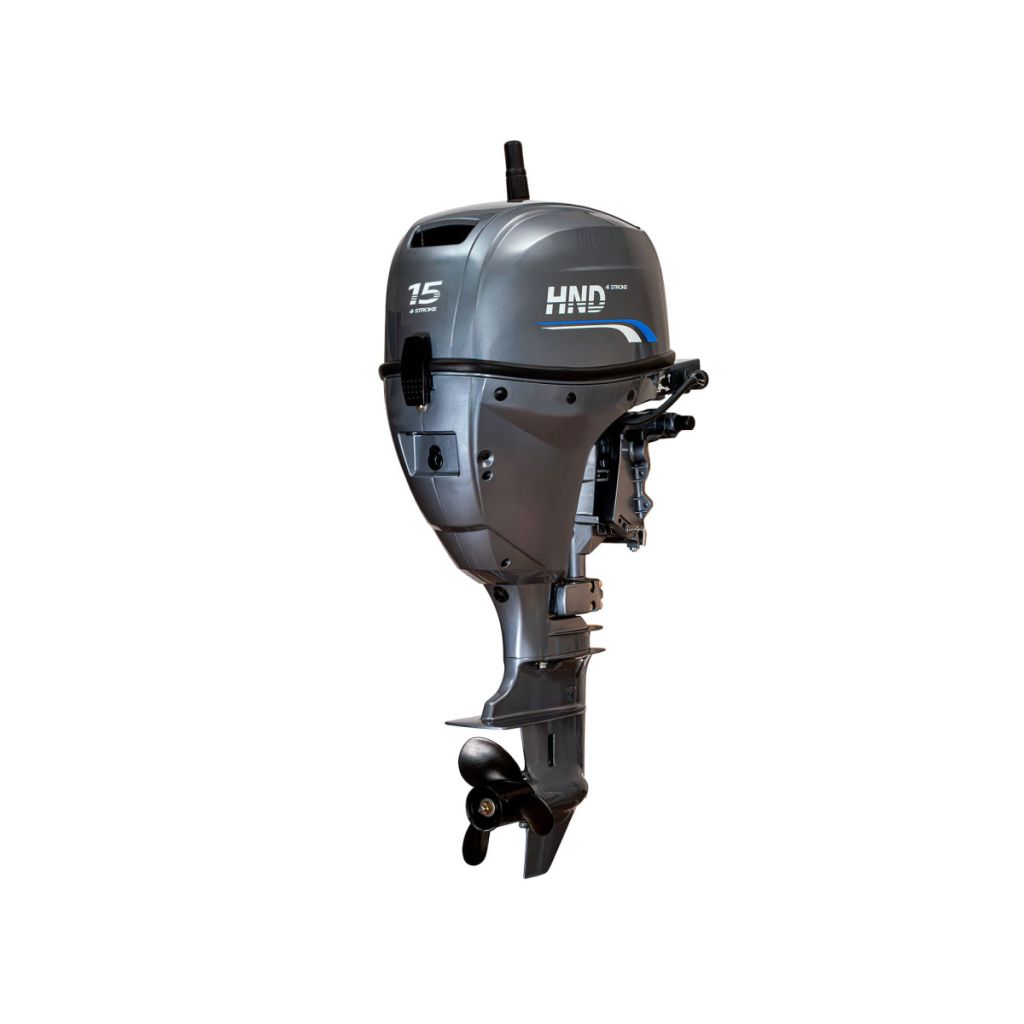 Представляем 4-тактный подвесной лодочный мотор HND 20 FERS номинальной мощности 20 лошадиных сил и рабочим объемом 345 см³. F - 4-тактный двигатель; E - электростартер; R - дистанционное управление; S - короткий дейдвуд