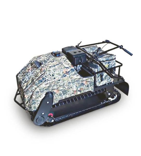Мотобукс весит 103 кг, а размеры машины составляют 150 см в длину, 54 см в ширину и 84 см в высоту. Модель оснащена гусеницей с отличным сцеплением с поверхностью льда и снега шириной 500 мм. Гусеница в сочетании с катковой подвеской и подпружиненными тележками способна проходить спокойно по льду и даже по территории без снега.