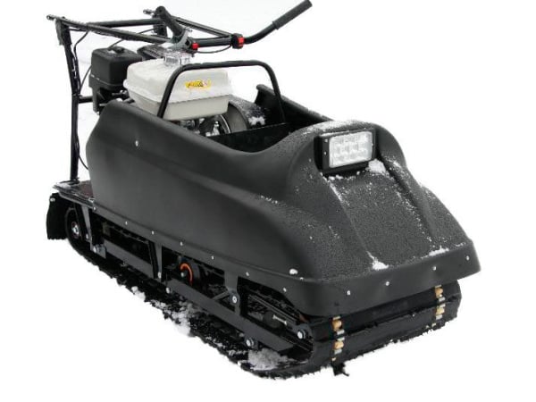 Мотособака весит 101 кг, а размер ее составляет 155 см в длину, 64 см в ширину и 84 см в высоту. Модель оснащена гусеницей шириной 500 мм. Гусеница в сочетании с катковой подвеской способна проходить спокойно по льду и даже по территории без снега.
