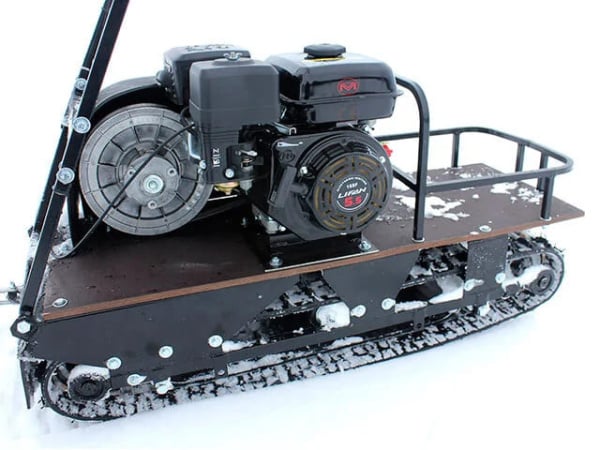 Буксировщик оснащен 4-х тактным двигателем мощностью 13 л. с., достигающий скорость до 40 км/ч. Это позволяет быстро перевозить груз до 250 кг в санях и на специальной багажной площадке мотобуксировщика. Объем двигателя составляет 389 кубов.