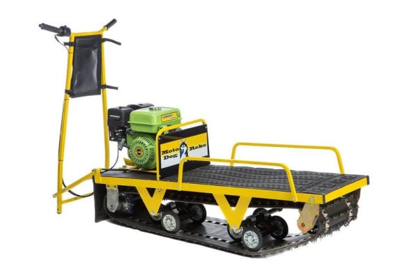 Мотособака оснащена 4 тактным мотором мощностью 7 лошадиных сил, что позволяет набирать скорость до 22 км/ч. Это максимальная скорость, которая позволит владельцу быстро перевезти груз 230 кг. Объем двигателя достигает 200 кубов, а объем топливного бака - 3,5 литров, что значительно в совокупности сказывается на мощности и производительности мотобукса.
