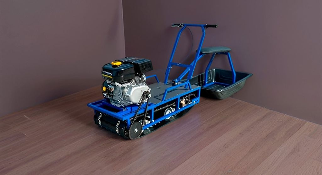 Альбатрос-L 9 PRO без фары — это мотобуксировщик с бензиновым 4-тактным двигателем Lifan 170FT-R мощностью 9 л.с.. Он оснащен композитной гусеницей шириной 380 мм, мягкой катковой подвеской и имеет максимальную скорость до 23 км/ч.