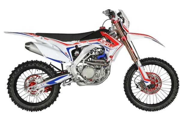 В раме Kayo T6 250 Enduro установлен 4-тактный мотор с системой водяного охлаждения. Работающий с карбюратором Nibbi PE34 двигатель рабочим объемом 250 см3 с 6-ступенчатой трансмиссией отличается сбалансированной производительностью и высокими показателями мощности – максимальная развиваемая мощность составляет 27 лошадиных сил.