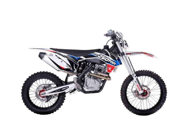 JMC 250 FRR 21/18 - кроссовый мотоцикл, который отлично подойдет как для покатушек с друзьями, так и для участия в соревнованиях по мотокроссу. Рама байка изготовлена из стали, установлен двигатель последнего поколения 172FMM от компании Zongshen - 4-х тактный с воздушным охлаждением, имеет 2 клапана на цилиндр и выдает 21 л.с, смесь для него готовит реплика японского карбюратора KEIHIN PE 28. Установлены алюминиевые колеса 21/18, передняя и задняя подвеска - реплика KKE, полностью регулируемая, позволяет улучшить управляемость и отрабатывает все неровности, встречающиеся у вас на пути. Все опции позволят комфортно использовать байк как в любительских покатушках, так и в серьезных эндуро выездах.