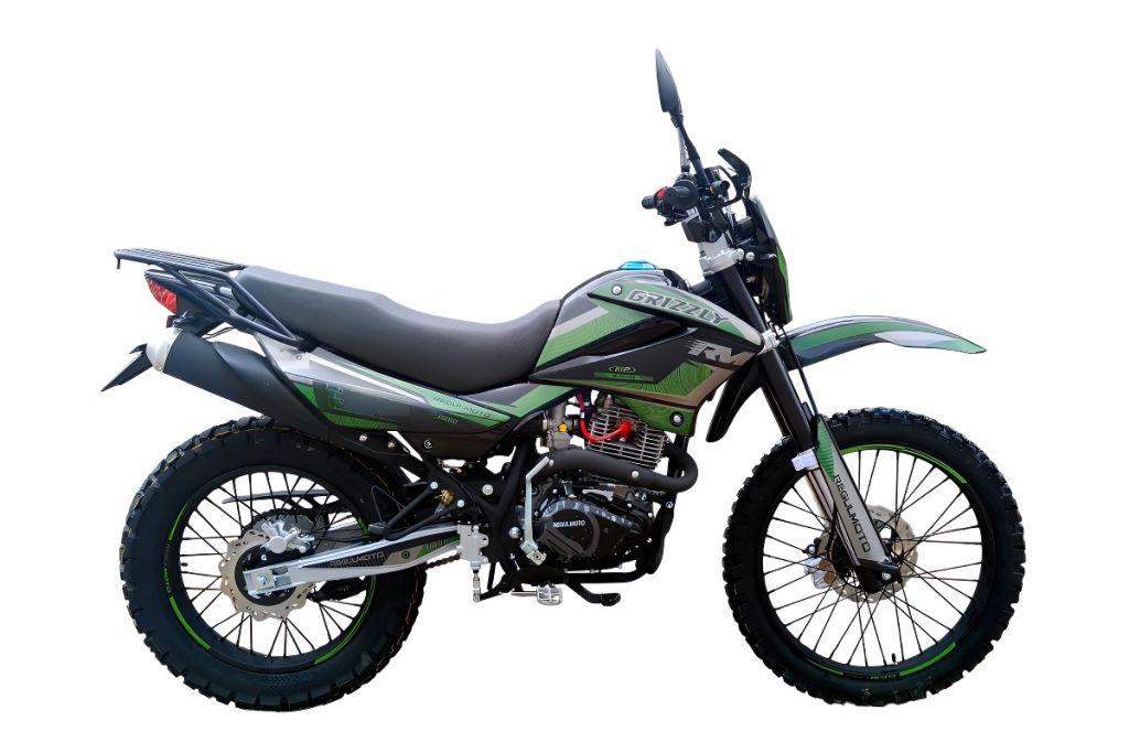 Regulmoto Grizzly — это универсальный эндуро-мотоцикл с ПТС, ориентированный на комфортное преодоление бездорожья и поездки по городу. Он оснащен надежным 271-кубовым двигателем Zongshen PR300 (около 22 л.с.) с балансирным валом, энергоемкой подвеской (41 мм вилка) и 18/21-дюймовыми колесами.
