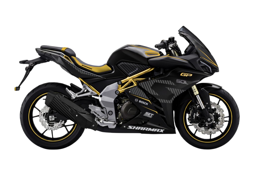Sharmax GP501 ломает этот стереотип. Два радиальных суппорта спереди, обратная пробуксовка сцепления и 42 лошади в 400 кубах — характеристики, от которых становится тесно в рамках городского трафика.