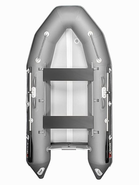 Лодка комплектуется надувным дном низкого давления, которое обеспечивает жесткость корпуса лодки, повышая устойчивость на воде и улучшая управляемость. Кроме того, продольные перегородки выполняют роль дополнительных ребер жесткости: пол практически не уступает по прочности твердым вариантам.