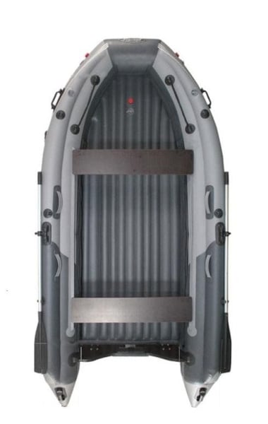 Эта моторная лодка отличается повышенной плотностью баллонов и днища 1100 г/м2, обеспечивая уверенность, устойчивость и стабильность внутри судна, избавляя от ощущения, будто сидишь на скамейке над водой. Кроме того, безопасность пассажиров дополнительно обеспечивается натянутым вдоль борта леерным ограждением.