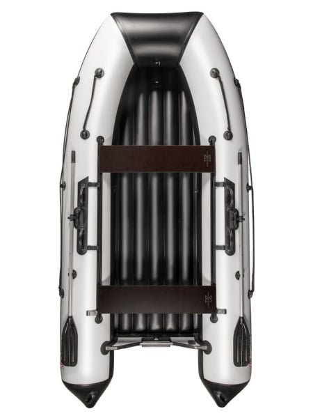 Лодка комплектуется надувным дном низкого давления, которое обеспечивает жесткость корпуса лодки, повышая устойчивость на воде и улучшая управляемость. Кроме того, продольные перегородки выполняют роль дополнительных ребер жесткости: пол практически не уступает по прочности твердым вариантам.