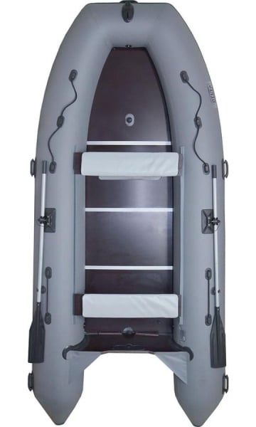 Эта лодка отличается повышенной плотностью баллонов и днища 750 г/м2, обеспечивая уверенность, устойчивость и стабильность внутри судна, избавляя от ощущения, будто сидишь на скамейке над водой. Жесткость днища при надувании достигается не из-за давления, а благодаря установленным вертикально и продольно внутри дна переборкам, изготовленным из ткани с нулевым остаточным удлинением.