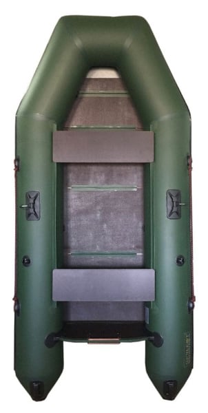 Лодка ПВХ ВЕЛЬБОТ Волгарь 290 МК Легкая серия-с Л-образным корпусом, разделенным внутренними перегородками на три автономных отсека и вклеенным жестким транцем. К корпусу лодки приклеено килеватое тканевое днище с надувным килем. Транец не килеватый. На борта лодки приклеены поворотные уключины, фиксаторы весел, причальная шайба, шайбы леера и пояса для крепления подвижных сидений и три формовые ручки для переноски лодки. На борт лодки приклеен гребешковый привальный брус. Лодка изготовлена из ткани ПВХ весом 750 гр/м2. Рабочее давление 0,25 кгс/см2. «Нога» подвесного мотора 380мм или 440мм.