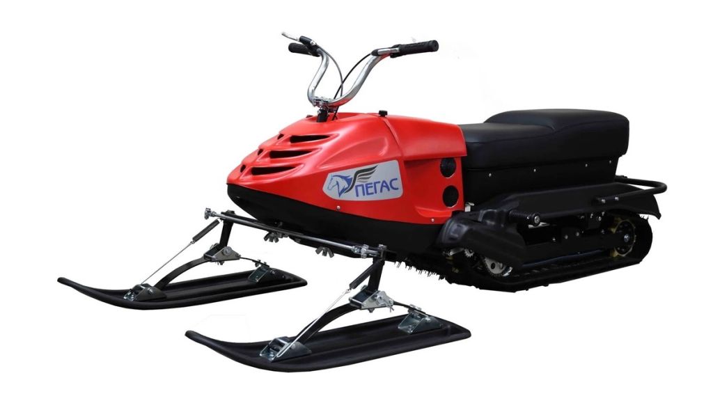 Снегоход трансформируемый ПЕГАС, предназначенный для эксплуатации в условиях зимнего бездорожья, а также по замёрзшим рекам и озёрам. Компактный снегоход для перевозки одного или двух взрослых людей. Отличительной особенностью является компактность в транспортировочном положении, что позволяет перевозить снегоход в легковом автомобиле.