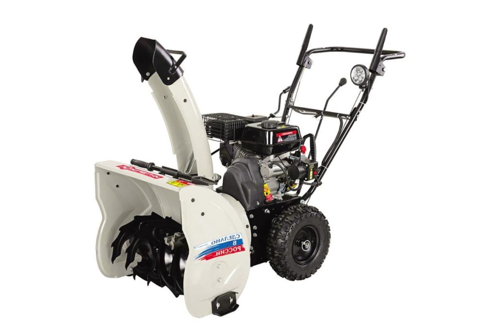 ● двухступенчатая система выброса: снег подается шнеком и выбрасывается крыльчаткой;