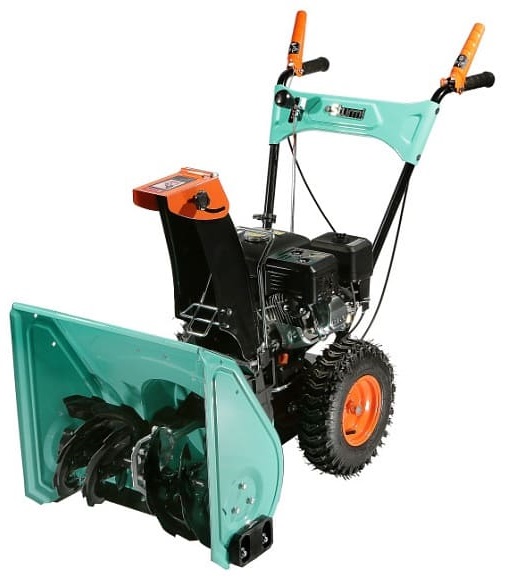 Высокая производительность машины обеспечивается не только мощным двигателем, но и продуманной конструкцией забора снега — этому способствует использование мощных агрессивных шнеков с большим профилем зуба, позволяющих легко справляться даже со слежавшимся снегом и настом, а также вместительного снегозагребного ковша, гарантирующего внушительную ширину прохода и возможность убирать сугробы до полуметра высотой. Снегоуборщик оснащен выпускным желобом, с регулировкой как по направлению, так и углу выброса, благодаря чему пользователь без труда может настроить оптимальное расстояние, на которое будет отбрасываться снежная масса. Максимальная дальность выброса достигает 11 метров. Для лучшего сцепления с поверхностью модель комплектуется специальными шинами с глубоким протектором.