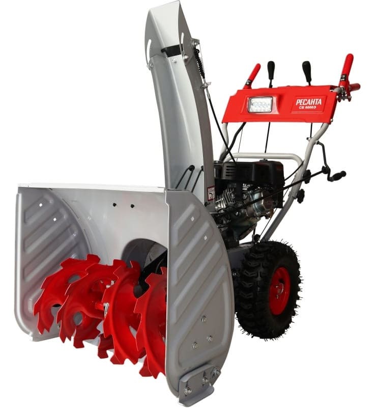 Самоходный снегоуборщик Ресанта СБ 6000Э предназначен для расчистки снега с небольших дорожек и территорий, например, возле загородного дома. Управление осуществляется с помощью рычага регулировки скорости и рычага для регулировки направления и дальности выброса, которые вынесены на панель оператора.