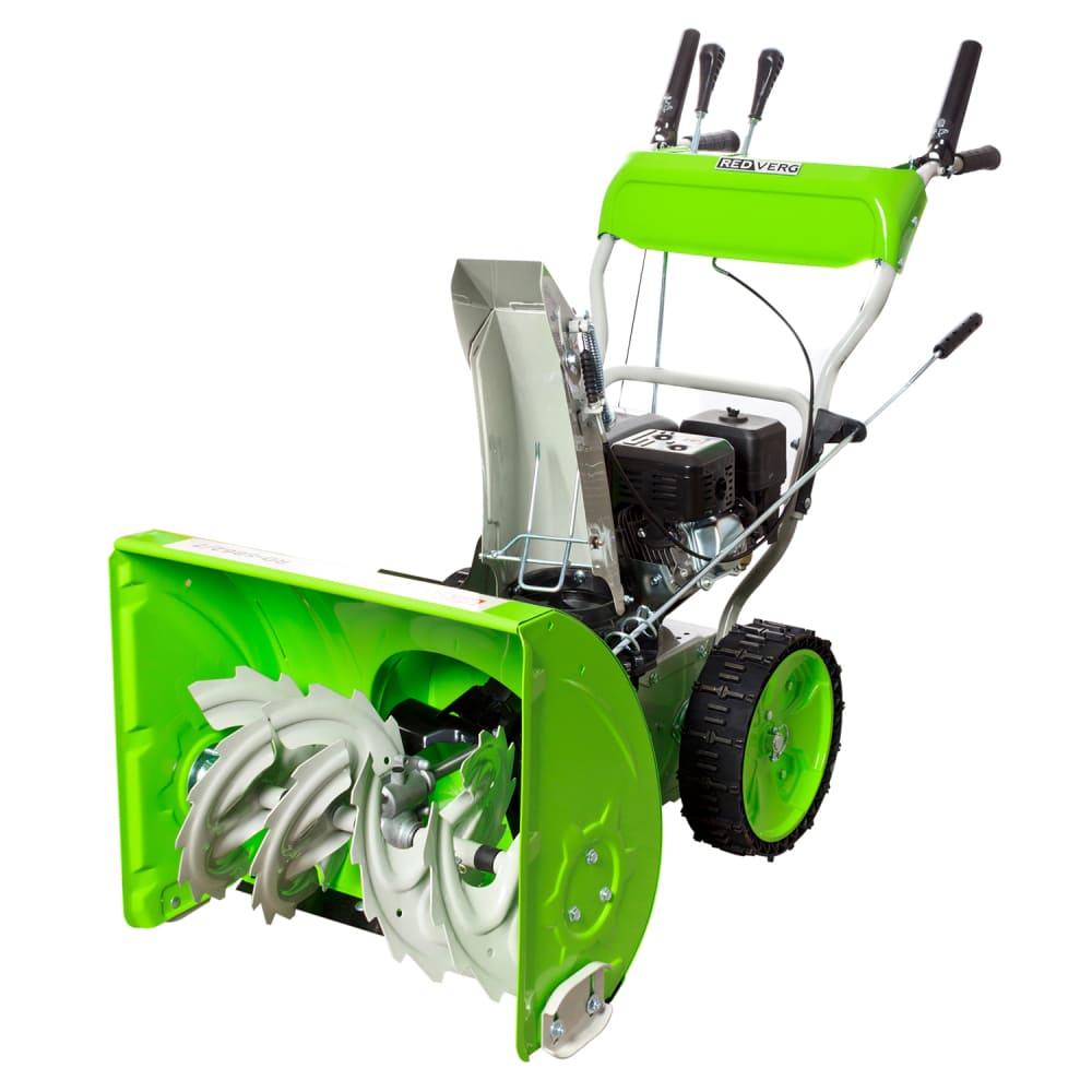 Самоходный снегоуборщик РедВерг оснащен бензиновым двигателем с воздушным охлаждением мощностью 7 лошадиных сил. Вместе с колесами с глубоким протектором, снегоуборочная техника легко перемещается, так как колеса предотвращают пробуксовку на обледенелых участках. Модель также оснащена датчиком уровня масла.