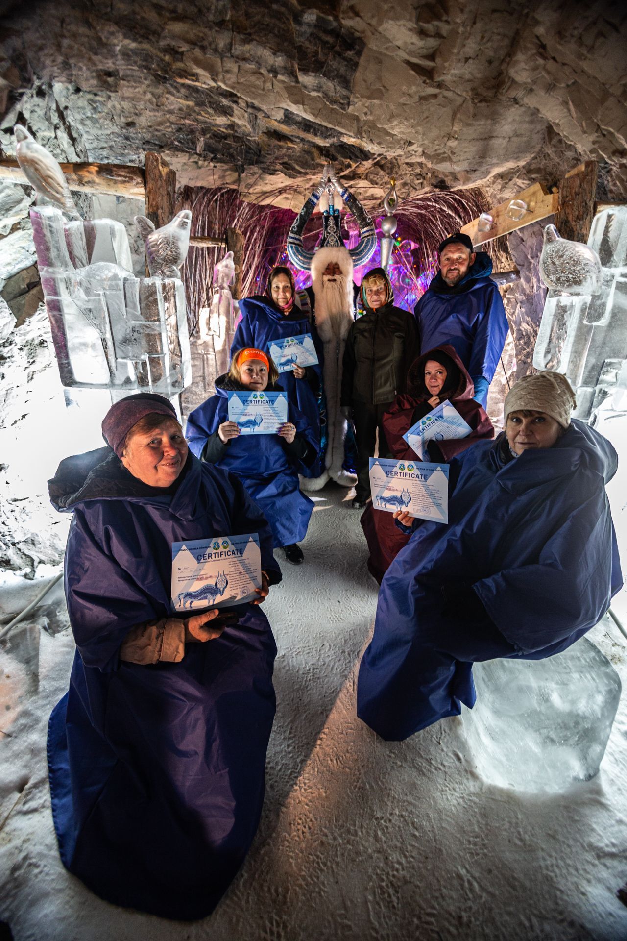 Встреча с Чысханом у стелы Холода. Получение сертификата о посещении Полюса Холода, фотосессия.