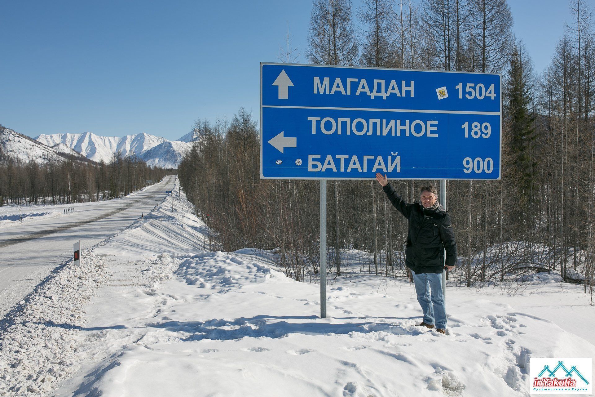 С района автозаправки «Куба» ответвление дороги на Оймякон. Отсюда до Томтора 156 км.