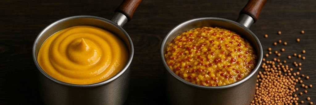 Дижонская обычно более гладкая, шелковистая, иногда даже кремовая. Она словно создана для того, чтобы смешиваться, образуя новые вкусы.
