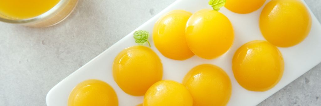 Ингредиенты: 200 г апельсинового сока, 2 г агар-агара силой 900 блум, ваниль (по желанию).