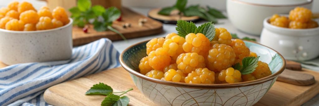 Кулинарные инновации. В Скандинавии из морошки делают ликеры, соусы к мясу и изысканные десерты. В Финляндии существует фирменный мороженый десерт из морошки с карамелью.