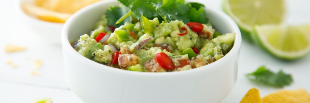 — Гуакамоле — традиционная мексиканская закуска на основе мякоти авокадо. Приготовление начинается с измельчения авокадо (непременно спелого, но не перезрелого): его можно порубить ножом, растереть в ступке или размять вилкой. Если не важна и не нужна текстура, то подойдет и блендер. Затем следует добавить соль, перец, сок лайма, рубленые помидоры, лук и чеснок, чили и кинзу.