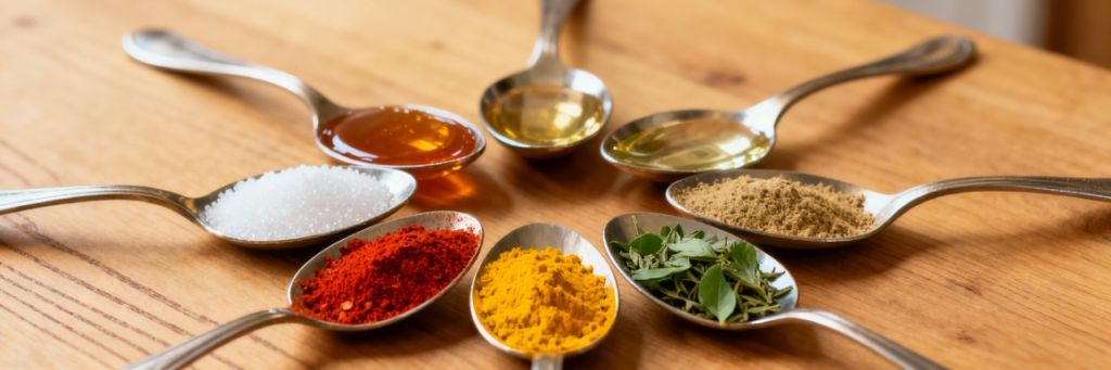 Полезно знать: Если в рецепте просто указано «1 столовая ложка», обычно подразумевается объем продукта без горки. Это особенно важно для специй и разрыхлителя, где перебор может испортить блюдо.