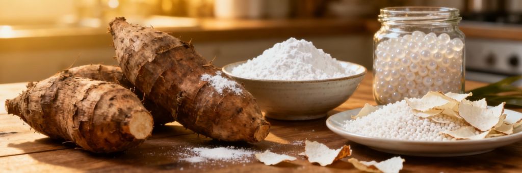 Тапиока — один из тех продуктов, которые кажутся загадочными, пока не попробуешь их на вкус. Белые гранулы, почти невесомые, на деле представляют собой крахмал, извлеченный из корня маниоки — растения, которое веками кормило жителей тропических стран.