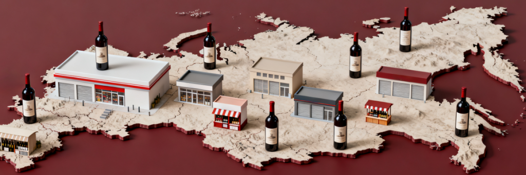 Лидером по представленности остается сеть «Ашан» (40%). Высокие показатели также у сибирского «Быстронома» и «Магнит Семейный» (по 35%). Средняя доля по формату продолжает рост, демонстрируя приверженность крупных ритейлеров к отечественному виноделию.